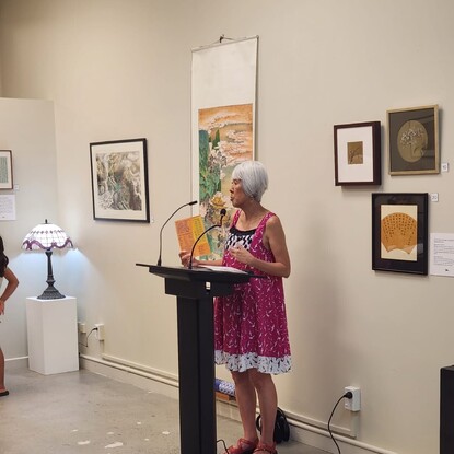 Nancy Caiger invited the audience to discover and enjoy the delights of the recently opened Boon Sculpture Trail that also passes by Sylvia Sinel's solo exhibition A Devotion to Form, at Welcome Swallow City Gallery