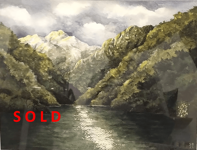 In addition to her signature cityscape oil compositions, gallery artist, Sandra Barlow is also a fine 'Waikato Watercolourist'. Her broody painting, The Sounds from the As you Like it Exhibition has recently found distinct favour with a discerning ,local collector.