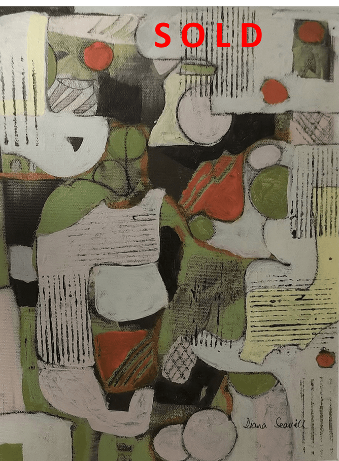 Sold from the Resident Artists' Gallery, Diana Seavill's fun abstract composition, Connections. This particular piece of art has been a favorite of gallery goers, now part of a local collector's portfolio.
