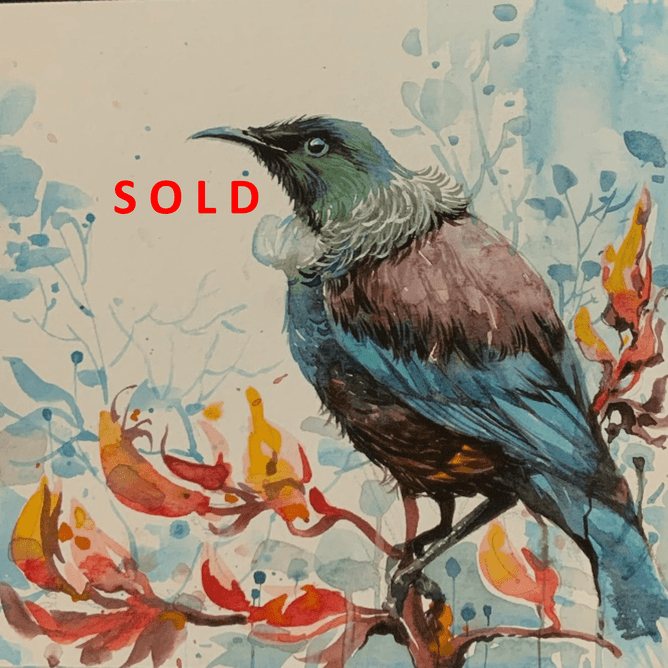 Hong Cumming's fabulous watercolour, Bad Hair Day from the Waikato Watercolourists III exhibition has taken flight and will now, hopefully, finally settle down in its new home to be.