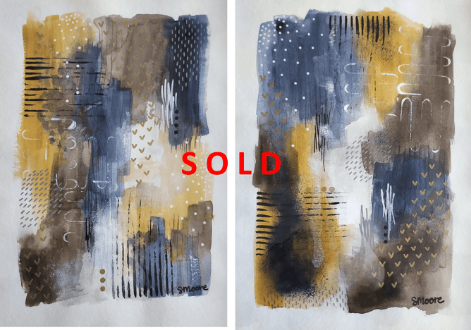 Gallery artist, Stacey Moore has produced two very attractive abstract compositions, namely Milky Way and In the Stillness, now sold from the Resident Artists’ Gallery to a local collector. The happy couple will stay together, now destined for the South Island.
