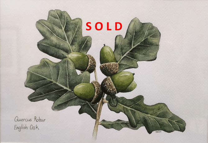 Returning to her watercolour roots, gallery artists Sandra Turner-Barlow presents a sublime botanical art composition, English Oak , sold from the Resident Artist's gallery.