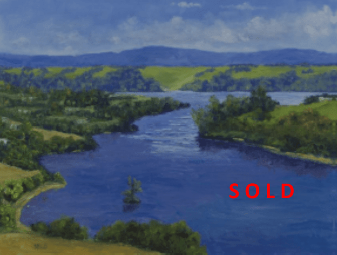 Gallery artist Julie Mello uses a florid intuitive impressionist style to capture her subject. This is very evident in her composition, Waikato Life Blood, sold to American expats from Pennsylvania, who fell in love with it at first sight. The Waikato River now left the Resident Artists' Gallery, set to flow elsewhere.