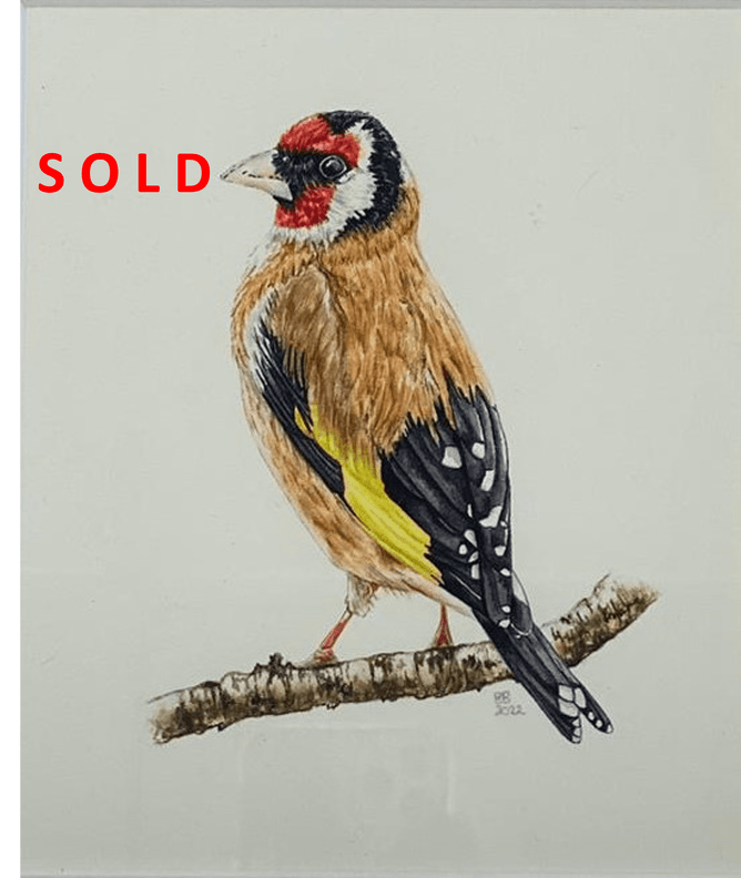 Goldfinch, from the distinctive exquisite watercolour brushes of gallery Italian artist, Elena Brambilla, now sold.