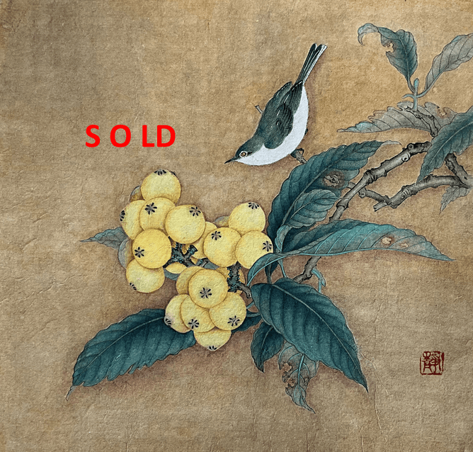 Sold on opening night of the exhibition, A Journey with Chinese Art, is the watercolour composition White-eye and Loquat by gallery artist Jing Liu
