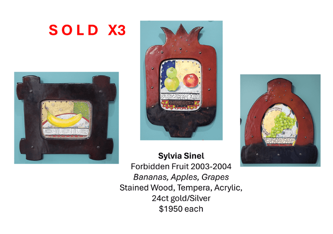 Sold from the City Gallery exhibition, A Devotion to Form, are Sylvia Sinel's, historic compositions from her Forbidden Fruit collection. A healthy diet of Bananas, Apples and Grapes for the discerning buyer of these fabulous pieces.
