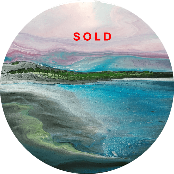 Toni Kingstone's resin on acrylic magical realism roundels have always enchanted gallery visitors. On this occasion, the irresistible draw of Purple Rain from the Winter Collection 2024 exhibition has seen this dreamy composition leave the gallery, destined to adorn a new space, its permanent home.