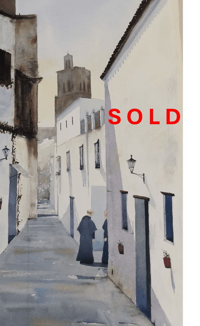 Chris Greenslade has amassed a loyal following for his watercolour style that tends to lead to his work being sold. In this case his Street Talking Priests from the Street Stories exhibition has taken favour with a collector who now has two pieces from this gallery artist.