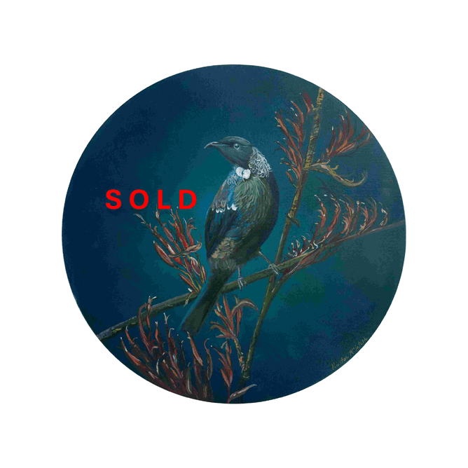 Kirsten McIntosh's dark immersive composition, Tui's Song has quickly found favor with a local collector. After a short few days in the gallery this Tui has taken flight to a new home.