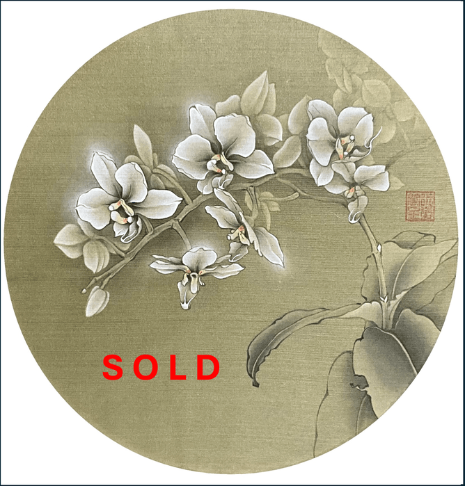 Sold from the exhibition, A Journey with Chinese Art, is Jing Liu's absolutely gorgeous watercolour on silk in the claborate style, Glowing Orchid. Eye-catching and quite irresistible.