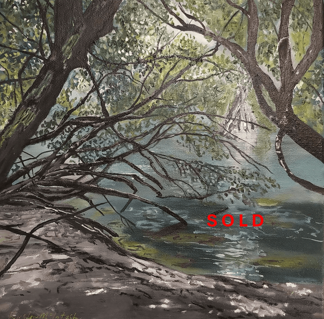 Kirsten McIntosh's lovely oil on canvas, Settler's Track has only been in the gallery for a few days and now sold and on it's way to permanent location.