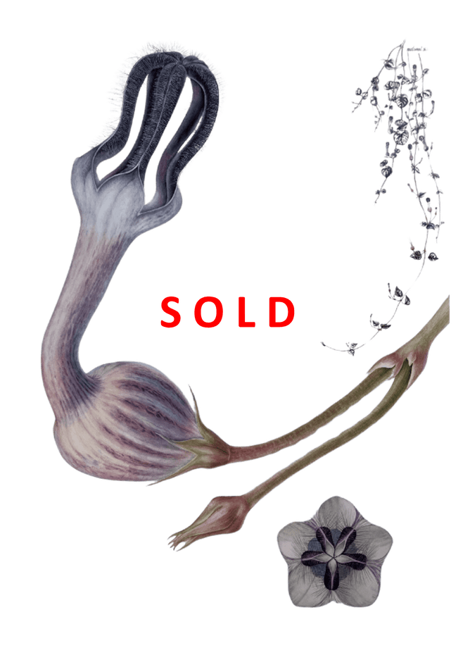 With her exotic and outlandishly wonderful composition, Ceropegia woodii, otherwise known as String of Hearts, gallery artist Sue Wickison, demonstrates the joy and pleasure of her art forms. This sale from the Outrageous Plants exhibition represents a significant gallery purchase.