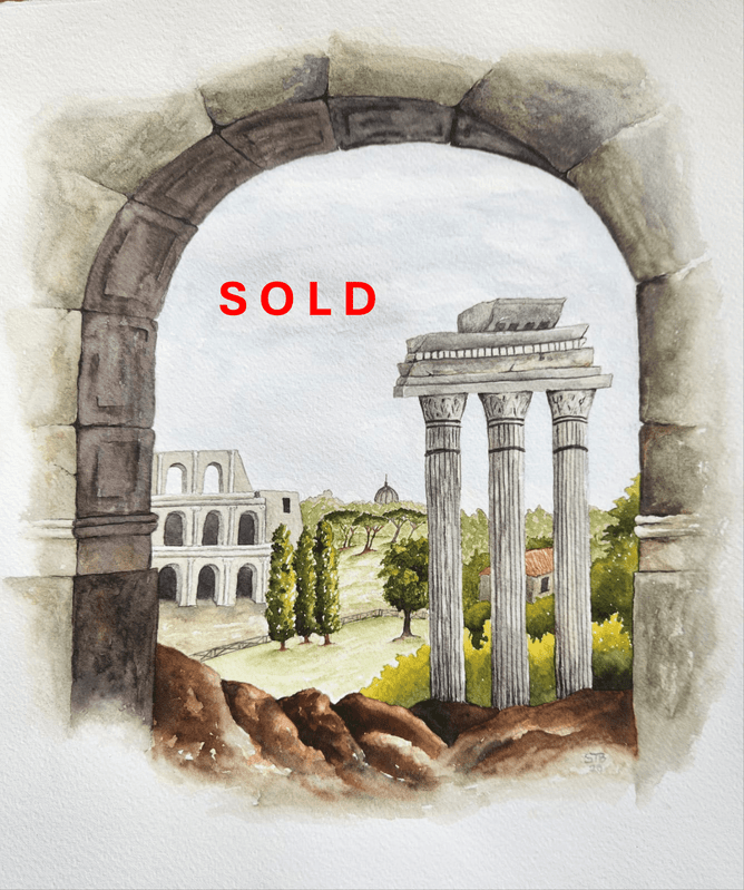 This watercolour composition, entitled, Arco di Tito, Roma II, was quickly sold at the opening of the exhibition.