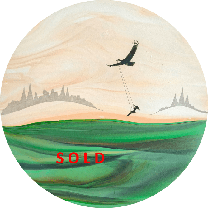 Toni Kingstone's magical realism that features a resin on acrylic style, is a constant gallery favourite. Girl on a Swing has now been sold trom the Winter collection 2025, to a discerning local collector of her work.