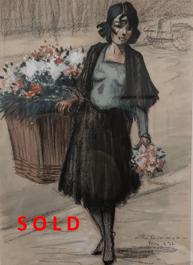 The Parisienne Flower Seller from The Grand Tour exhibition by French artist Georges Tournon, has been sold. Georges Tournon was the eldest son of the painter, publicist and illustrator Raymond Tournon and the portrait painter Éléonore Marche.