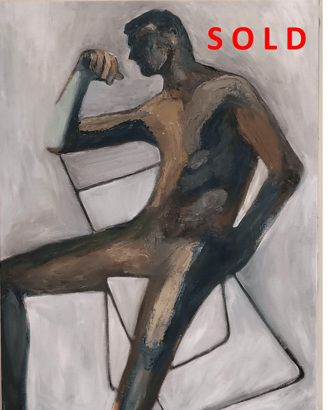 Resting Man is a Picasso pastiche by gallery artist, Jimmy Chang that echoes Picasso’s early cubist period with compositions such as Seated Nude Man, 1908. In Chang’s composition the deep internal reflexivity remains whereas the cubist structures have been largely softened towards angular lines that predate Tamara de Lempicka’s art deco inspired figures that emerged some twenty years later. Chang’s composition carries inner strength while escaping any attempt to establish coherent figurative meaning. The fascination presented to the viewer is endless. Now sold to a corporate buyer.