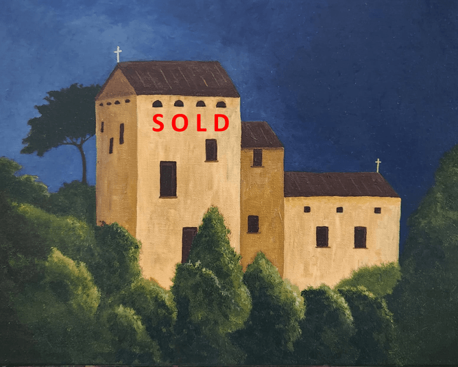 Sold from the Design is Everything exhibition is Sandra Turner-Barlow's composition, Chiesa di San Bonaventura. The buyer was excited to see the painting as she was familiar with the stucture and it's distinctive design.