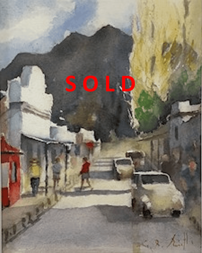 Sold from the Pepper exhibition is Arrowtown II by gallery artist, Gavin Smith. This watercolour follows the artist's post-impressionist brush, a light touch that brings the drama of the subject matter firmly to the fore.
