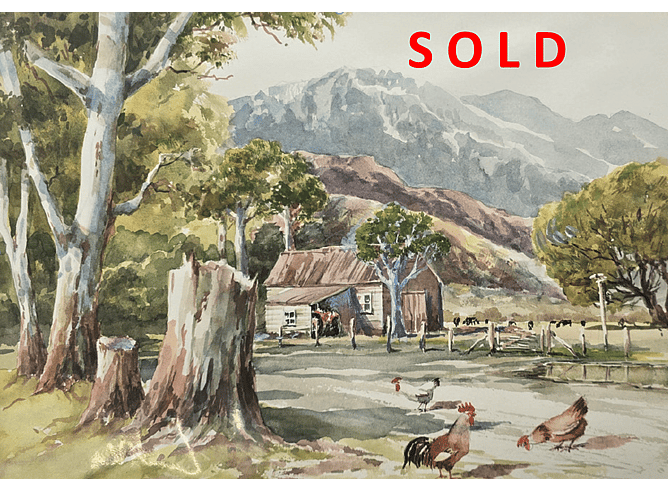 The last composition to sell from the showcase The Old World Meets the New... has past into the hands of avid local collectors who much appreciated the classic New Zealand narrative of a farm scene in the arms of a distinguished mountain. Mount Fyffe Farm Scene a detailed watercolour by Aston Greathead captures a moment in time and indeed the hint of an art form that belomgs to this world and no other.