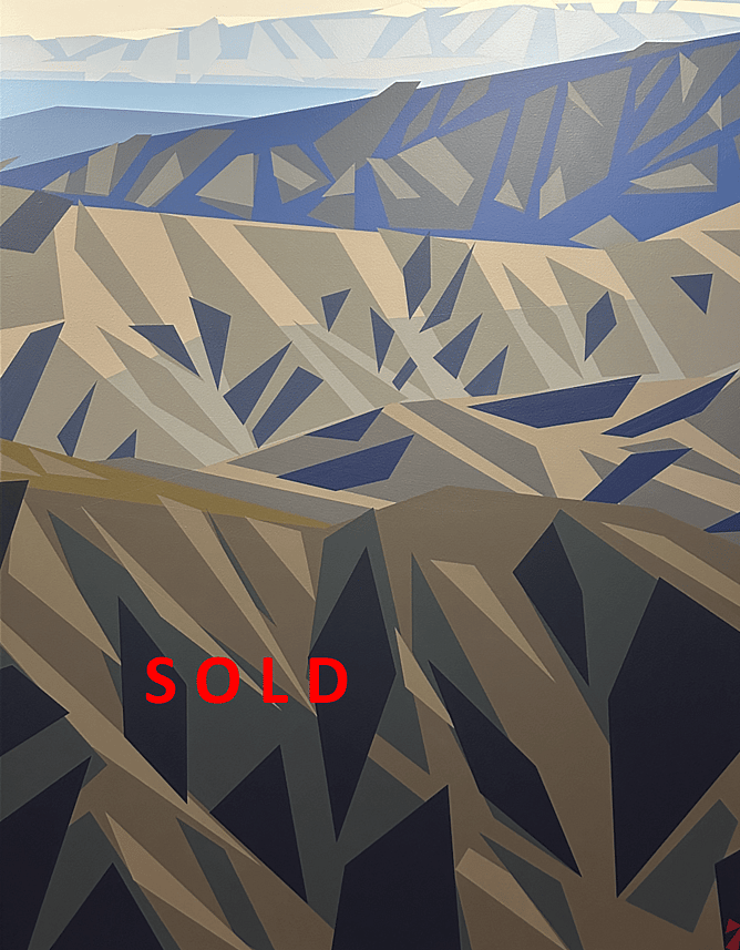 Gaen attracts significant interest at the Welcome Swallow Gallery. Sales ensure. On this occasion his extraordinary composition, The Edge of Fondness, from the PEAKS exhibition has been sold to local collectors, who greatly appreciated the geometric artistry of this painting.