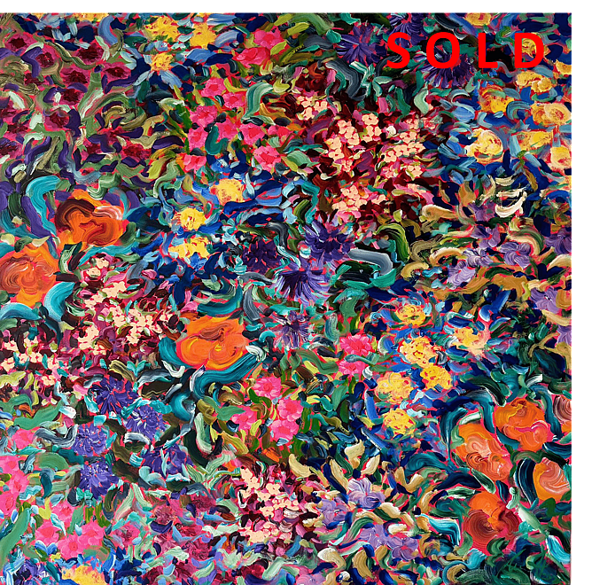 Sold from The Art of Hamilton Gardens, is Carmel Van Der Hoeven's second painting from her 'Six Easy Pieces' hexaptych. On this occasion it is the Indian Char Bagh Garden that will be on it's to Auckland.