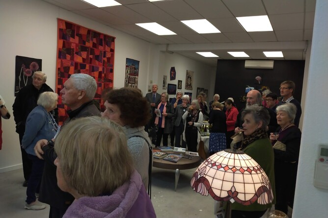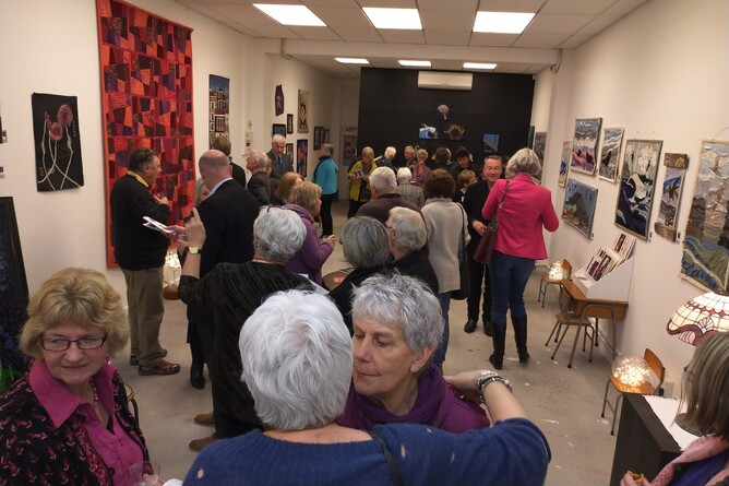 The launch of the new exhibition, threads of life, attended by over 150 people, was MC'd by Mark Kilgour, a member of the Achieving Change for Children Trust Board. He introduced the Hamilton Mayor, Andrew King who spoke about the important of volunteers in the community. Dr. Dorothy Gilson, Trust Chair and Chief Executive thanked all the artists for their wonderful art, the Trust volunteers and those who were attending the event. David Bluett from DB Chartered Accountants presented the Volunteers' Choice Award that went to Marilyn Rea-Menzies for her brilliant tapestry, "Extinction is Forever".