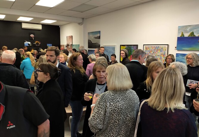 Mark Kilgour from the Trust Board MC'd the evening. Andrew Unternahrer, Dealer Principal at Ebbet Audi addresses the audience outlining the important of business being part of the Hamilton East Community. Dorothy Gilson, Board Chair and Chief Executive provided a brief history of the Trust and the Gallery. Richard Gemmell and Elsa Lye, respectively from Raglan Art and the People of Fire expressed their support for the Exhibition, the Gallery and the artists who were presenting their work.