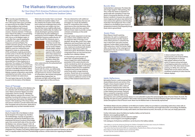 Article on the Waikato Watercolourists exhibition 14 February - 31st March