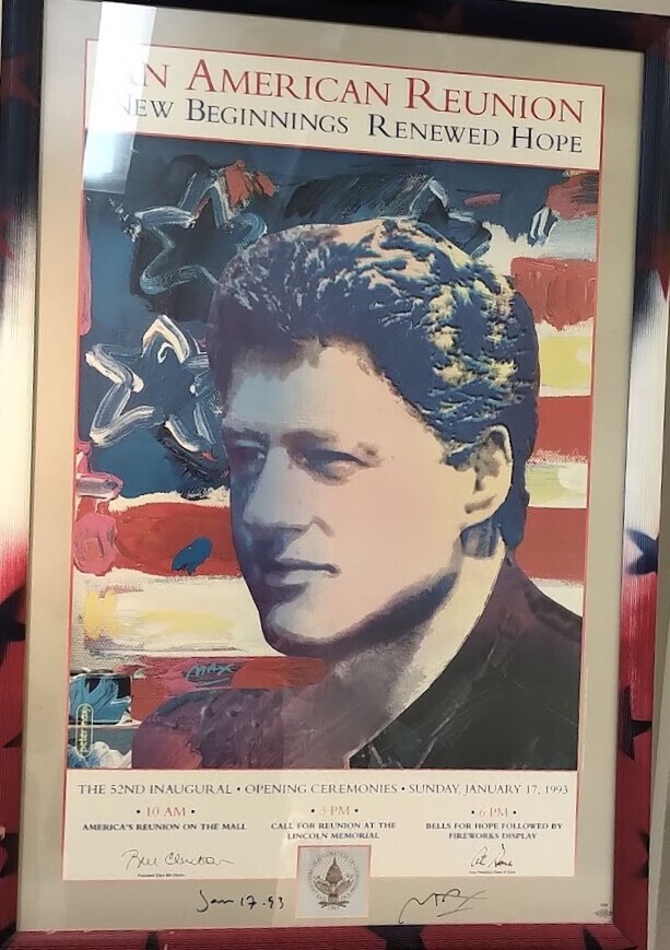 Peter Max has exhibited in over 40 international museums and over 50 galleries, worldwide. His work can be found in many prominent museums and private collections around the world including the Museum of Modern Art in New York. This historic piece, now sold at the Welcome Swallow Gallery is the only signed and dated composition of the Bill Clinton inauguration, in New Zealand.