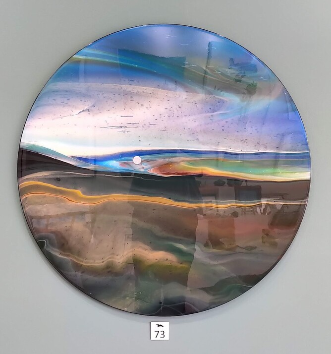 Winter Moon, a stunning 800mm d. acrylic and resin roundel from Toni Kingstone sold at close of day. It's that time of year. Come to the Gallery. Get it as quick as you can...