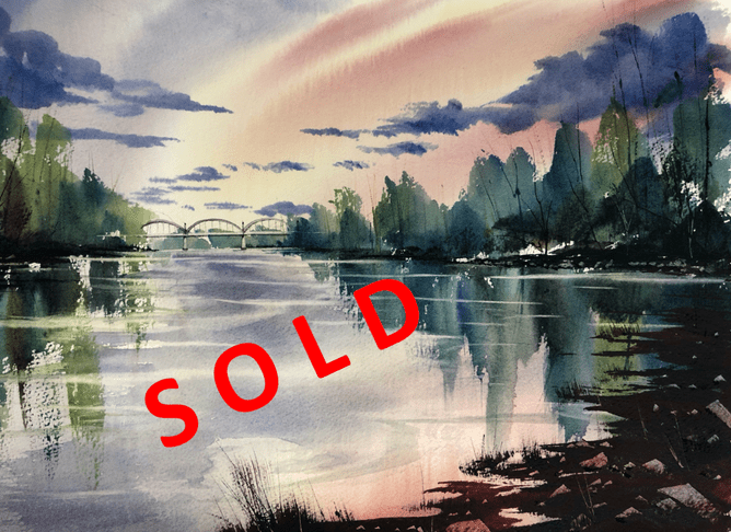 The watercolour composition Fairfield Bridge by gallery artist Martin Necas is an excellent illustration of using a vivid colour palette to bring a familiar subject to life. Necas presents sublime images that captivate the eye, inviting the viewer to rethink what they see. Sold from the Welcome Swallow Gallery.