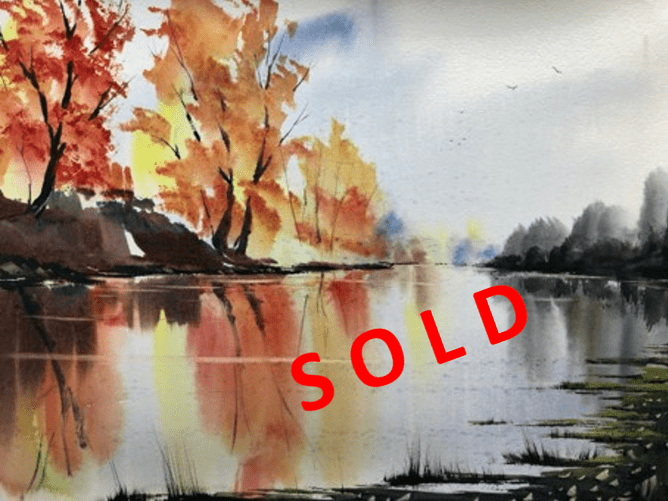 It is perhaps fitting that when days with cooling wispy breezes bring strange premonitions of Summer's final end that Martin Necas's reflective rendition, Autumn River Bank should find its way into a local collection. Sold on this day.