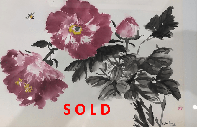 Dejin Lu's recent sale from the Permanent Collection to a South Island collector is another of his signature watercolour light expressive style compositions. In this case a beautiful, delicate flower study of the Peony.