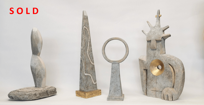 As the Welcome Swallow Gallery has had to shut its doors due to covid lockdown, one enterprising customer has decided to innovate his way out of the situation. The only legitimate solution, he said, was Time Travel. Accordingly, the four magnificent pieces by Sylvia Sinel that comprise Time Travel, has a new owner. Not sure if, where and when, we will see him again.... The Gallery wishes him well on his travels. He is the new Warrior, who will be guided by The Protector, as he navigates though the Portal to a new Landmark. Way t'go.