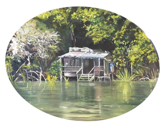 First seen in the Welcome Swallow Gallery Exhibition in late 2020, Kirsten McIntosh's evocative New Zealand scene, Mai Mai at Rotoehu has been purchased by an Italian collector. This serene composition is also featured in the Welcome Swallow Gallery 2022 Calendar, for the month of August.