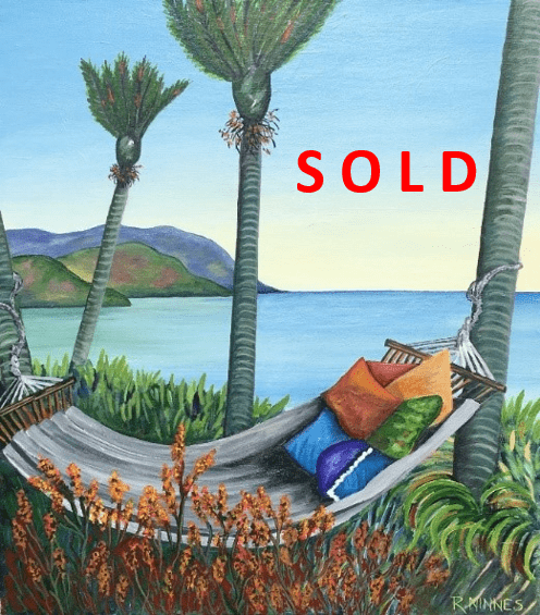 Gallery artist Robyn Ninnes donated her calm and serene composition In the Nikau Grove to the gallery, so that in sale, all proceeds would go to the children's programs supported by the Trust. Thank you Robyn.