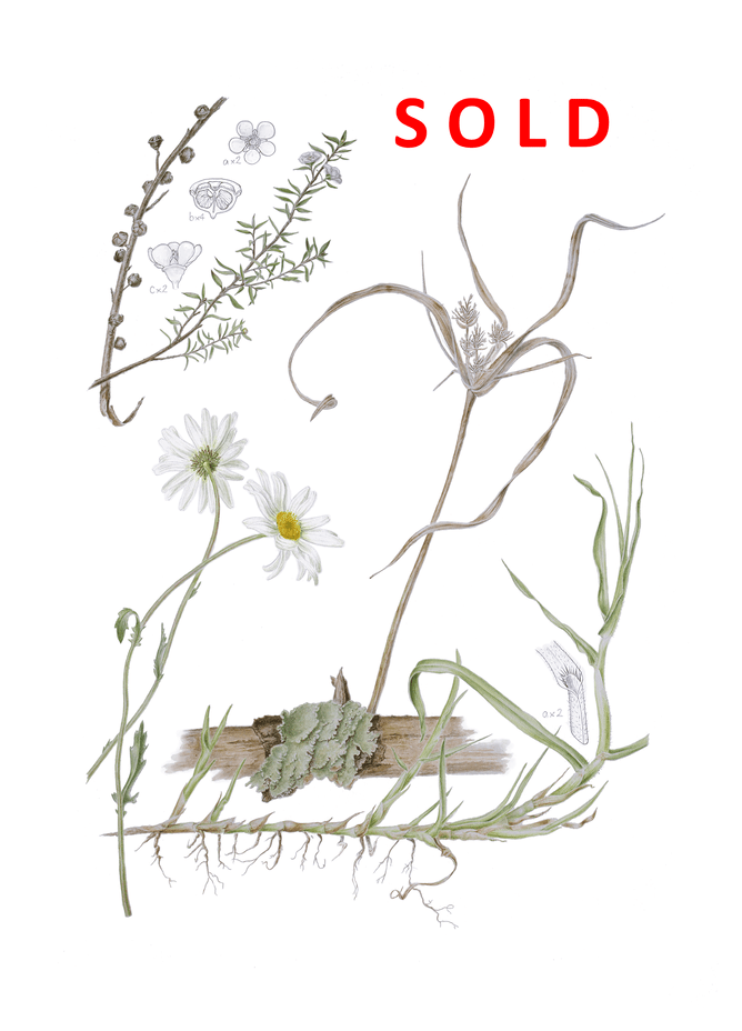 Lesley Alexander's super delicate composition, On the Verge, has an edgy feeling to it that has entranced many art aficionados' in the gallery. Now sold to a discerning buyer enchanted by this beautiful Botanica art exhibition.