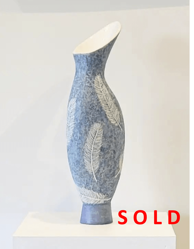 This regal lady emerged from the kiln pretty much as I had imagined her during the making. It doesn't happen all that often so I'm super happy. Hand-built ceramic vessel 500 x 170 x 110 mm glazed with various shades of engobes and white glaze.