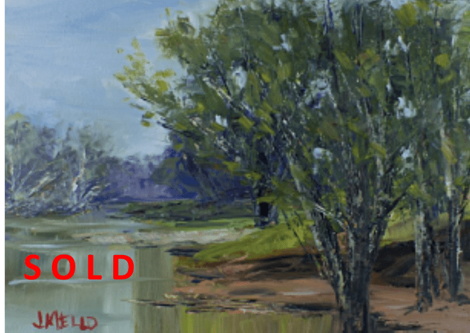 It is always a wonderful occasion when an artist, new to the Gallery sells their work for the first time. From the exhibition, As You Like It, Julie Mello's atmospheric Queensland composition depicting the Daring river , Along the Bank, has found favour with a first time visitor to the gallery. New artist, new visitor, new year.