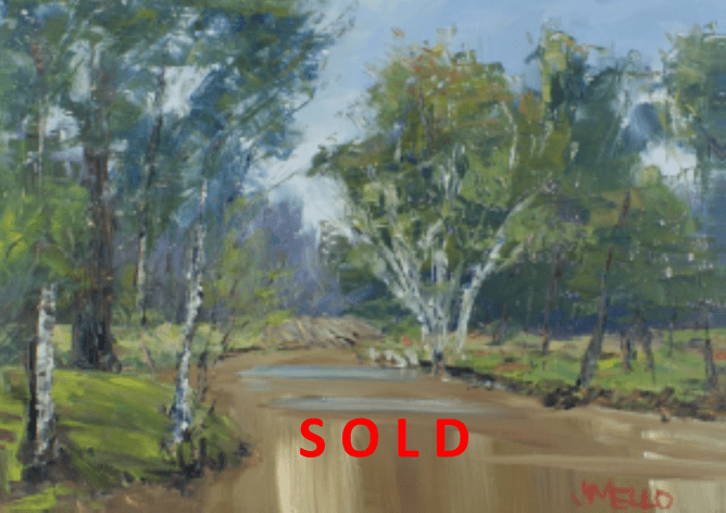 'Flood of sales' for Julie Mello's gorgeous Darling river compositions; Judd's Lagoon, from the As You Like It exhibition now on its way to a home in the Waikato, purchased by a discerning art collector.