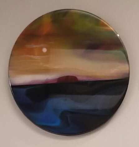 Always a gallery favourite, Toni Kingstone's acrylic & resin roundel, entitled Mirage, from the exhibition, As You Like It, was witnessed and seen very clearly by a local collector whose admiration manifested in uplifting the composition to it's new home.