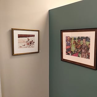 These exhibition artworks are all works on paper produced by highly trained, professional artists. Although all three are completely different in their style and subject matter, they all display the skills that can only be acquired from years of training and practice in rendering the human body.