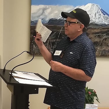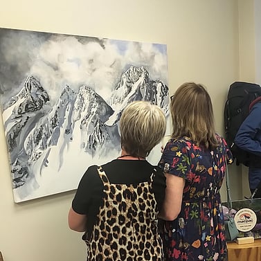 On behalf of the exhibition artists and to the many artists throughout history who have sought to capture nature’s behemoths, Michael Barker addressed the audience, sharing the origin of his own art interests that has led him to be strong on conservation and preservation of New Zealand mountains and landscapes. He vigorously urged politicians to take this topic seriously, concluding that climate change is the greatest threat to nature and the ability of artists to capture the grandeur that belongs to all.