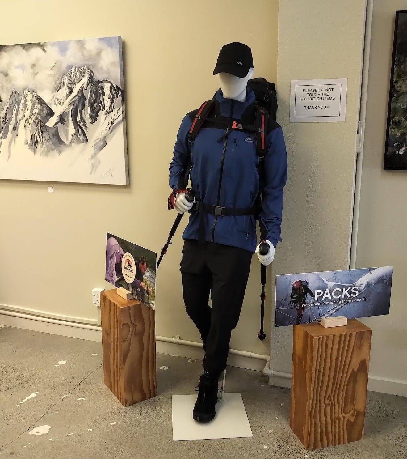 It has always been the case and ever so now that finding sponsorship support for art galleries, has been challenging. We are thrilled to have a strong partnership with MACPAC for the PEAKS exhibition. Given the subject matter of the exhibition, this sponsorship is most apposite and most welcome. As part of the exhibition we are showing an installation that fits well with the subject matter. Meet "Mac".