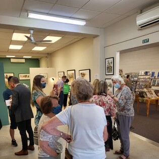 The Craig's Investment Partners sponsored, Welcome Swallow Gallery exhibition, The Waikato Watercoloursits II was launched Friday 14th January 2022, with a packed gallery. Trust CEO, Dorothy Gilson provided a swift review of the exhibition compositions, thanked the artists for their wonderful work and the Trust volunteers for their efforts that enabled the exhibition to take place. Mark Kilgour presented the Volunteers' Choice Award to Hong Cumming for her magnificent painting, Romancing the Bridge.