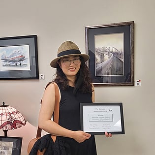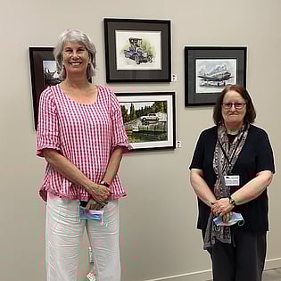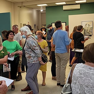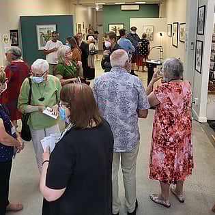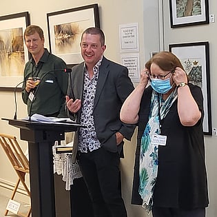 The Craig's Investment Partners sponsored, Welcome Swallow Gallery exhibition, The Waikato Watercoloursits II was launched Friday 14th January 2022, with a packed gallery. Trust CEO, Dorothy Gilson provided a swift review of the exhibition compositions, thanked the artists for their wonderful work and the Trust volunteers for their efforts that enabled the exhibition to take place. Mark Kilgour presented the Volunteers' Choice Award to Hong Cumming for her magnificent painting, Romancing the Bridge.
